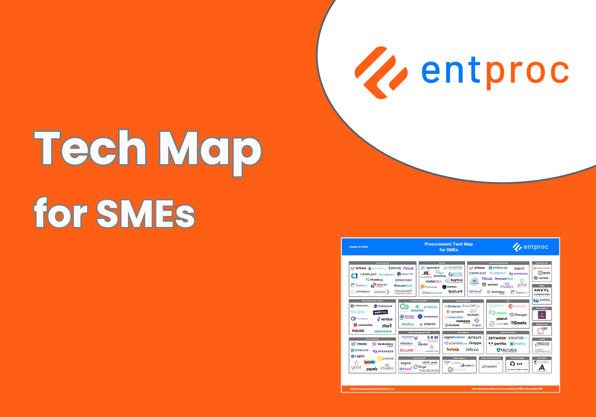 Tech Map of procurement tech targeting SME customers. Usually easy-to-implement without complex IT integrations. Many also offer license-based pricing.